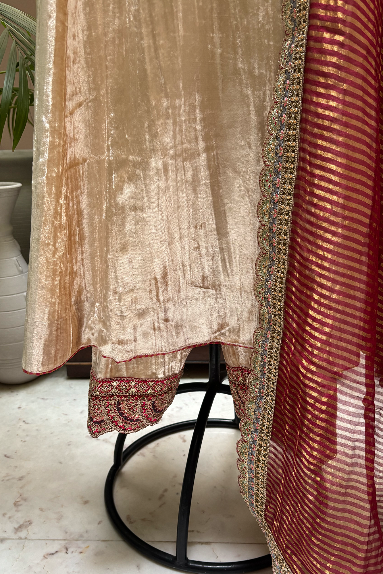 • This ensemble is perfect for festive and celebratory occasions, combining luxurious details with a rich, traditional aesthetic.