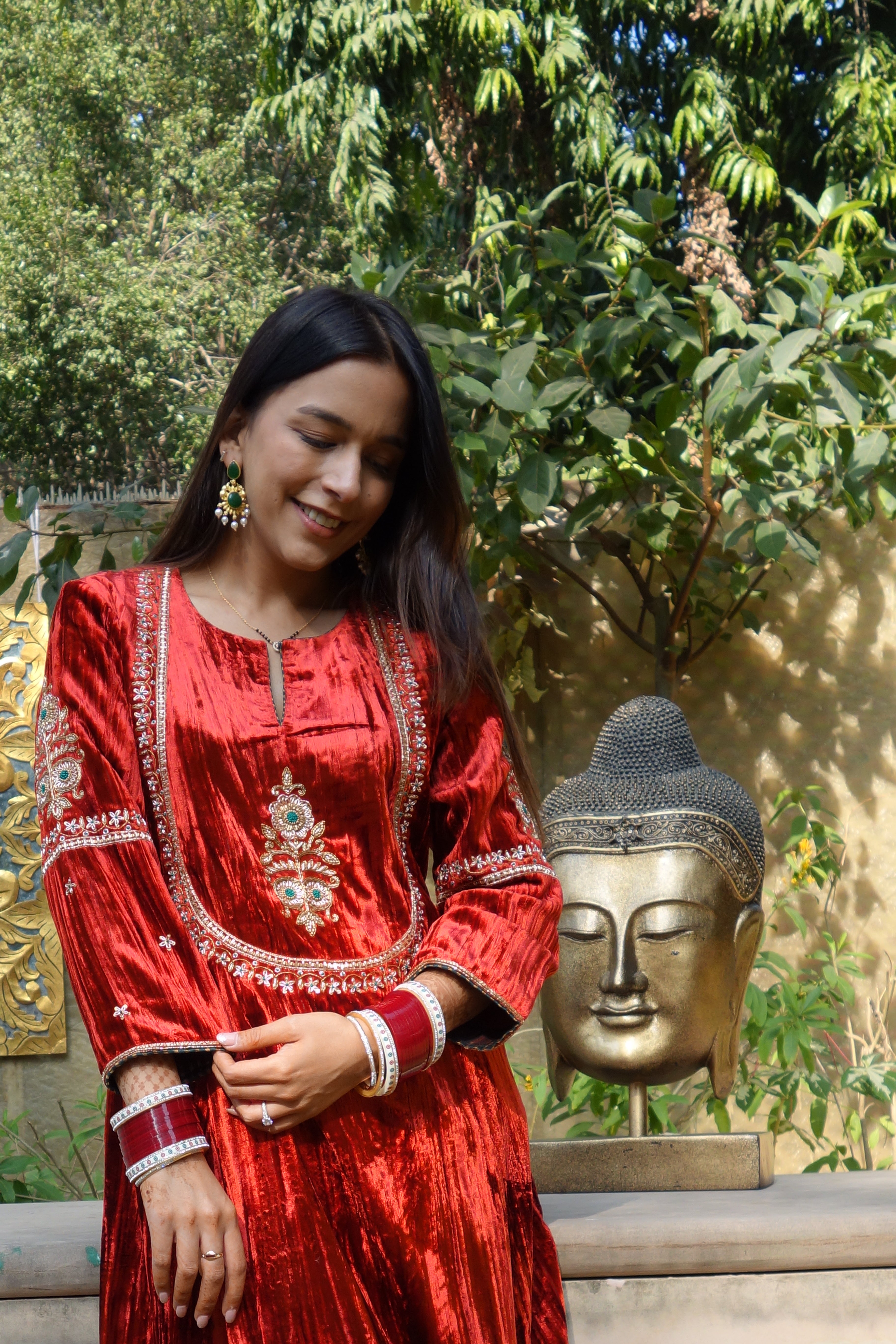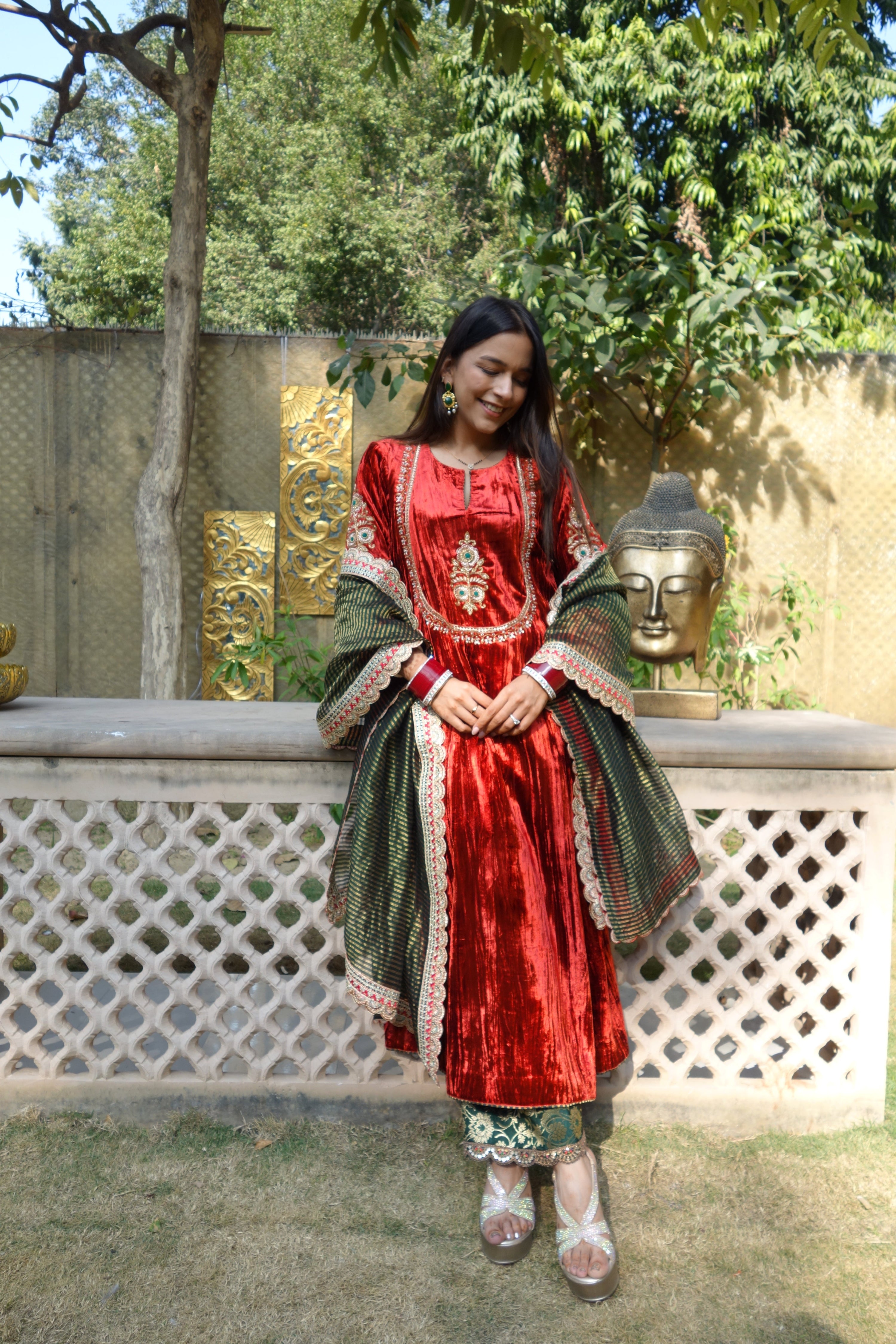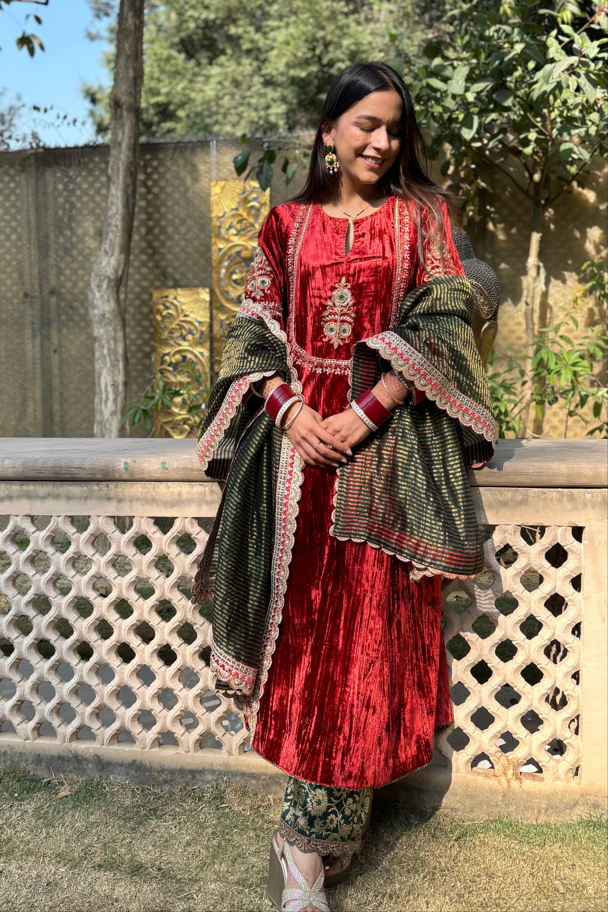 Rust Velvet Hand Embroidered Noor Kurta Set