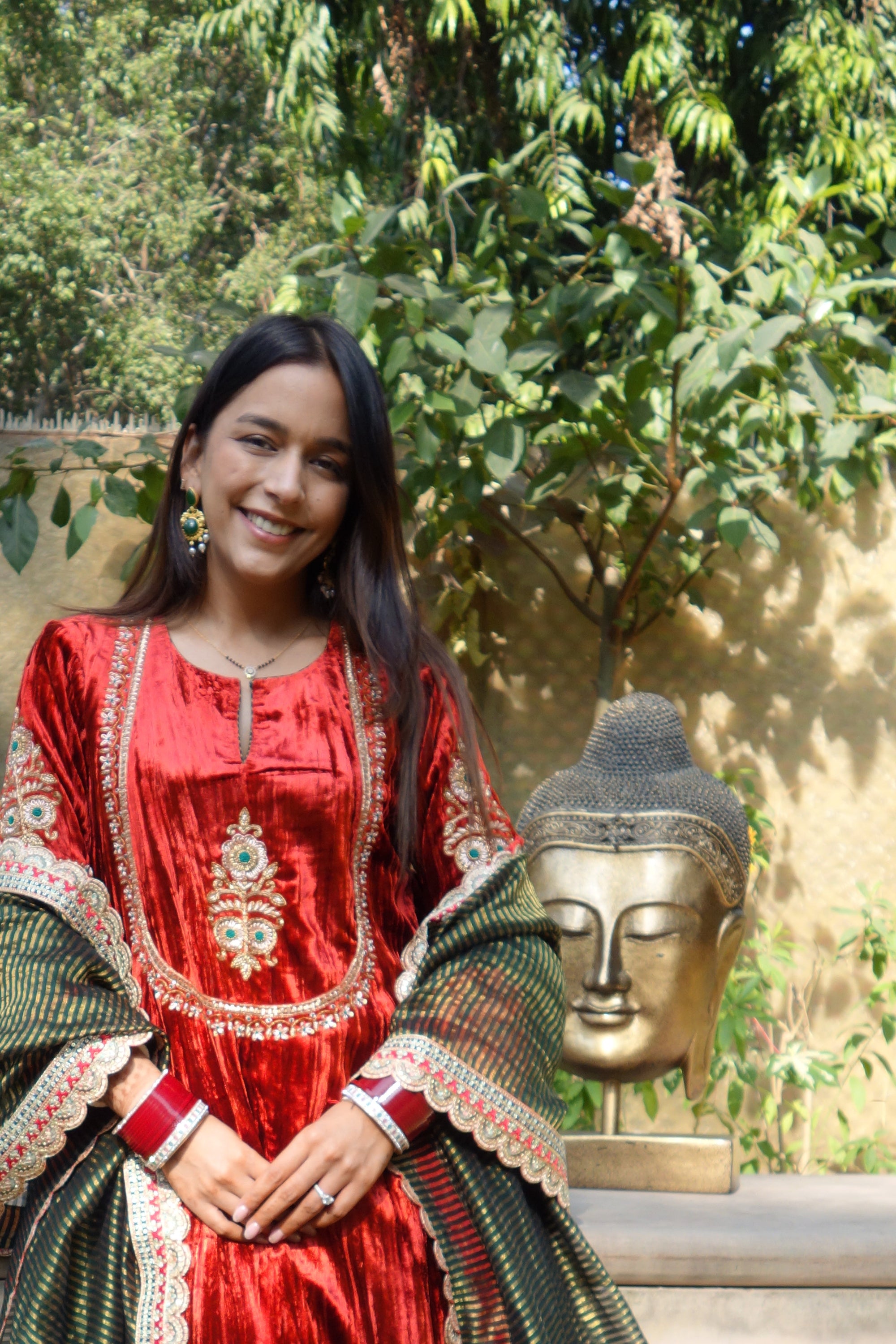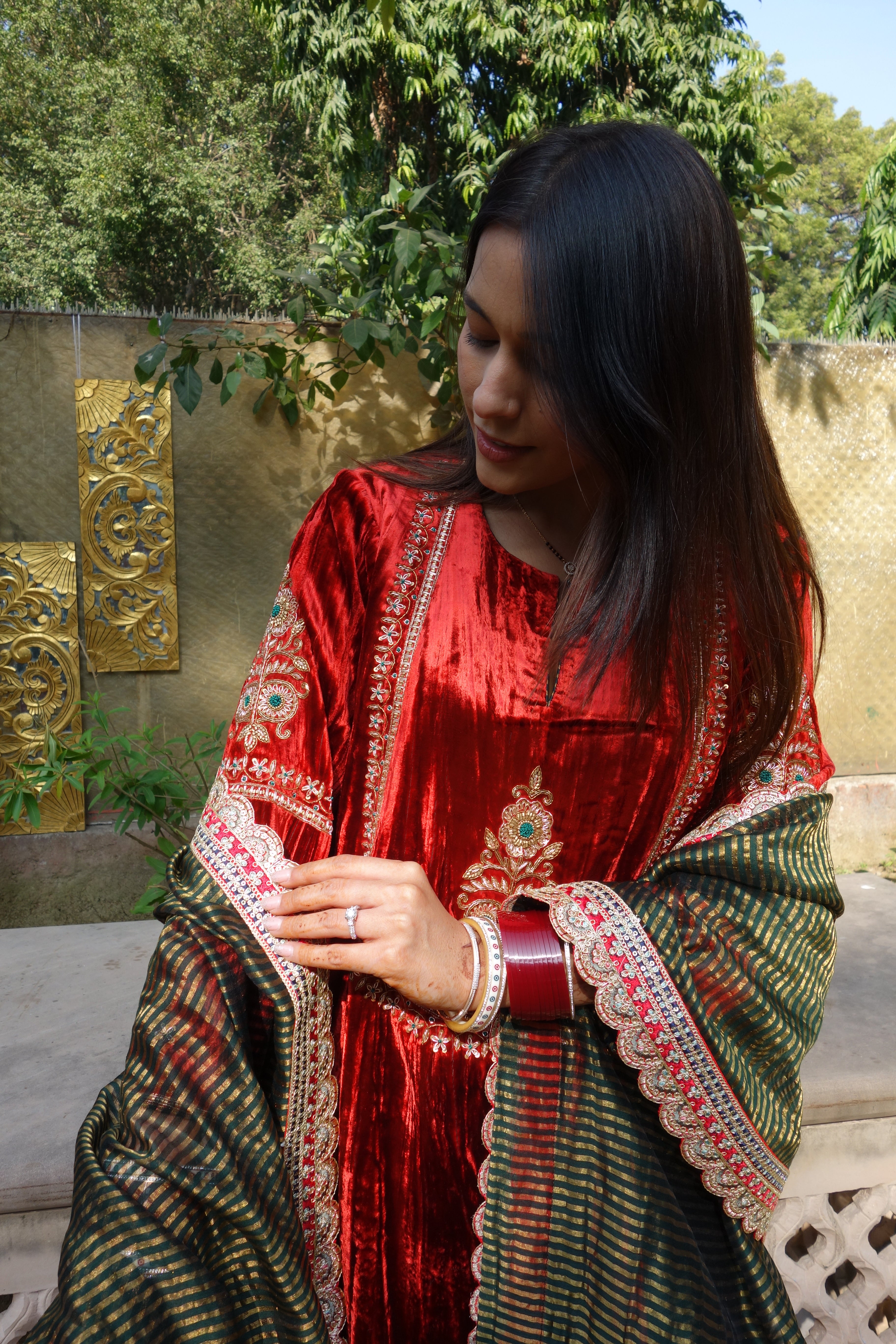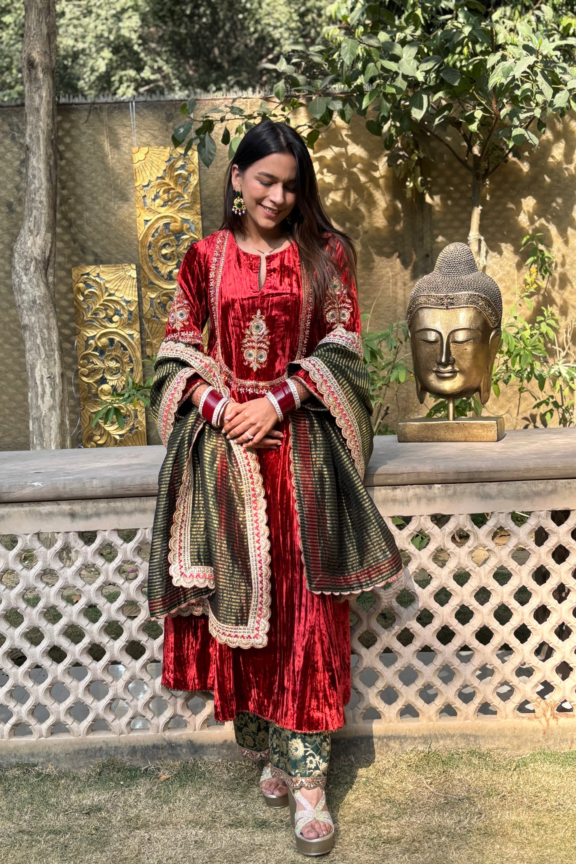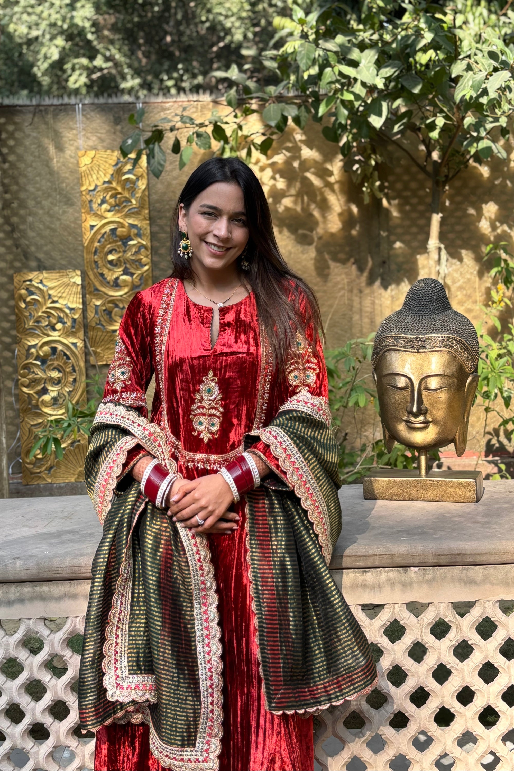 Rust Velvet Hand Embroidered Noor Kurta Set